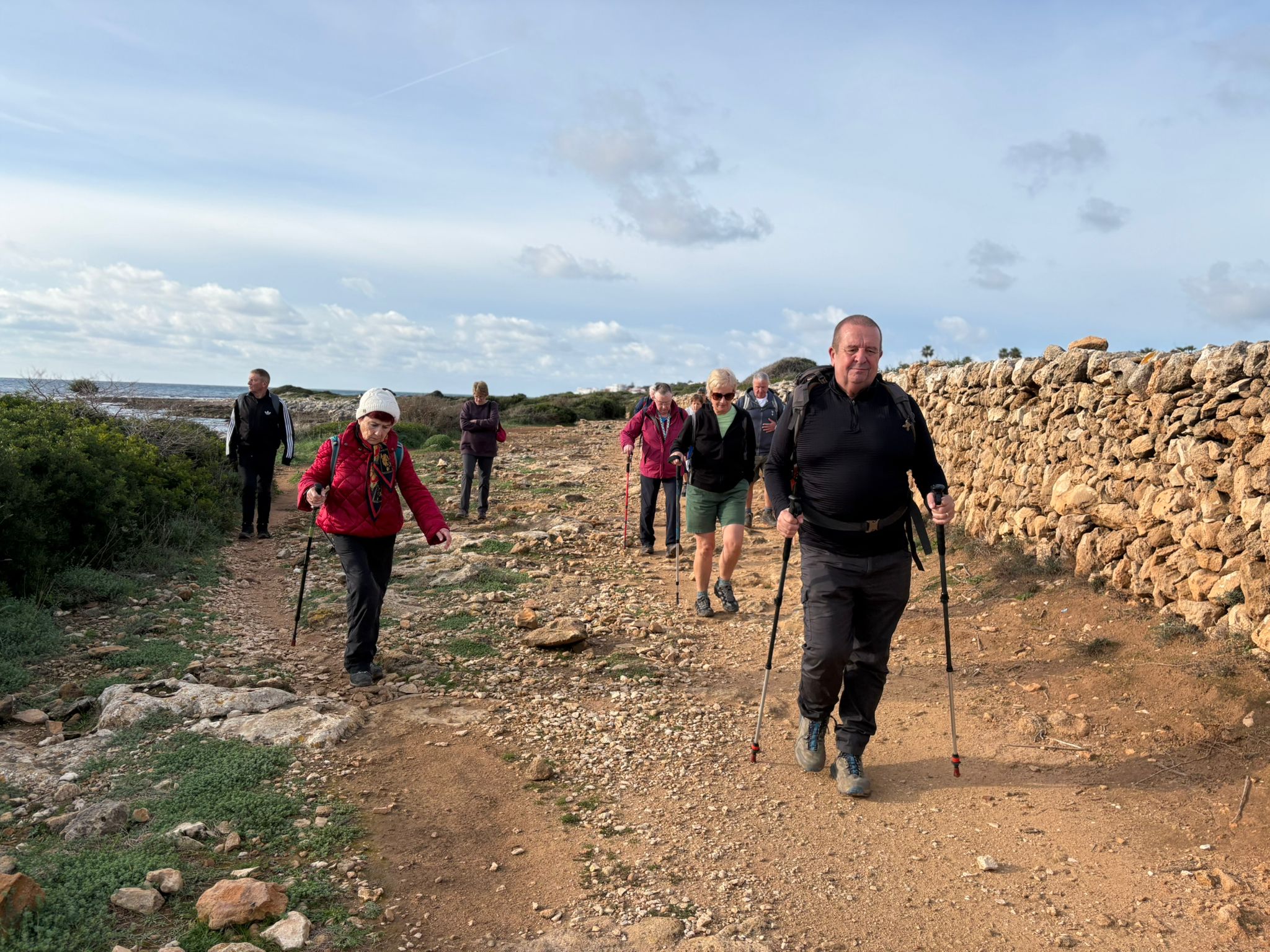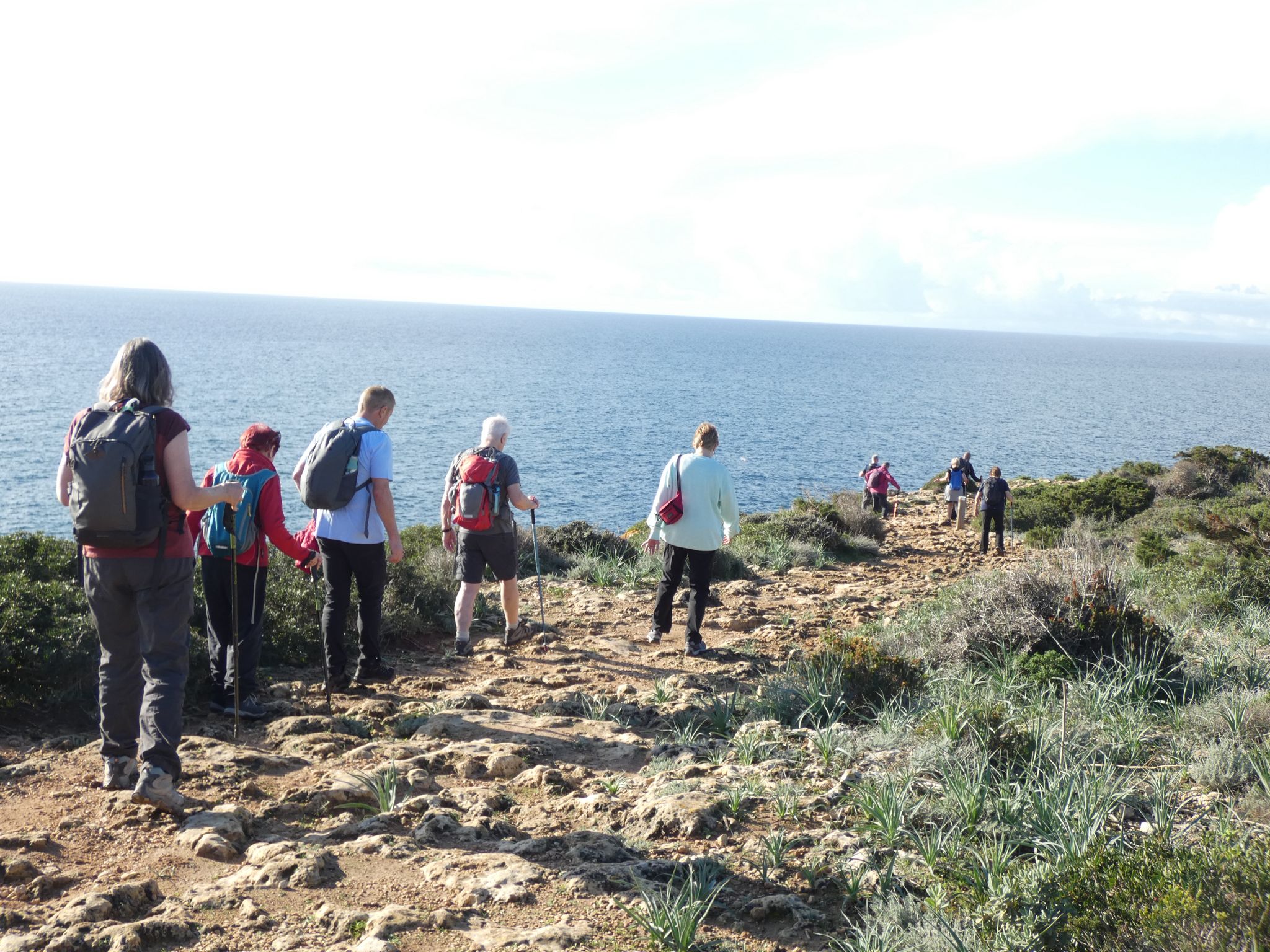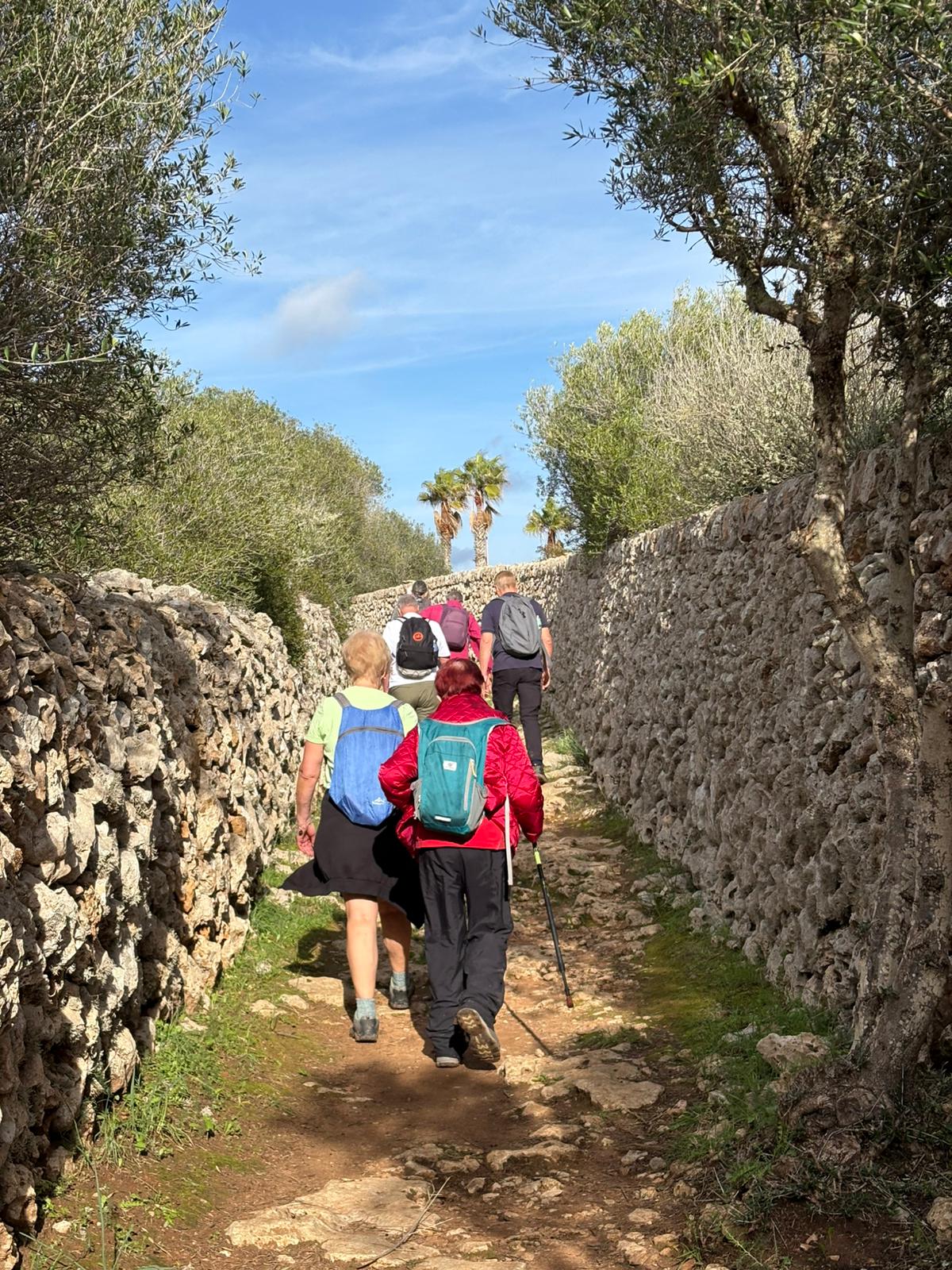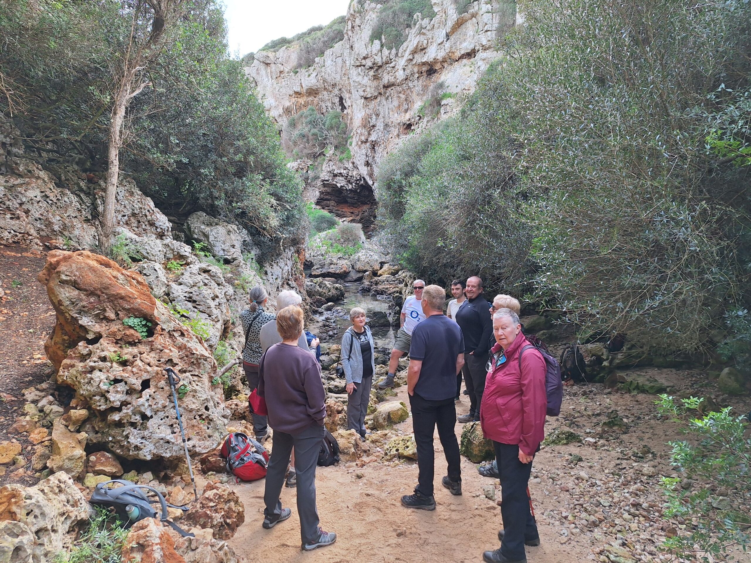 The walking on Menorca is simply stunning. At this time of year, the beaches are empty, the countryside is lush green and the first spring flowers are beginning to emerge. The walks mostly take place next to the sparkling blue Med., although we also get a chance to walk in and amongst the lush ravines and countryside of the island. During the week, we enjoy 5 walks and these are backed up by 2 guides and a recovery vehicle. This vehicle is in case somebody needs a lift along the way. We also always walk to the pace of the slowest in the group. Nobody should feel uncomfortable or over challenged.